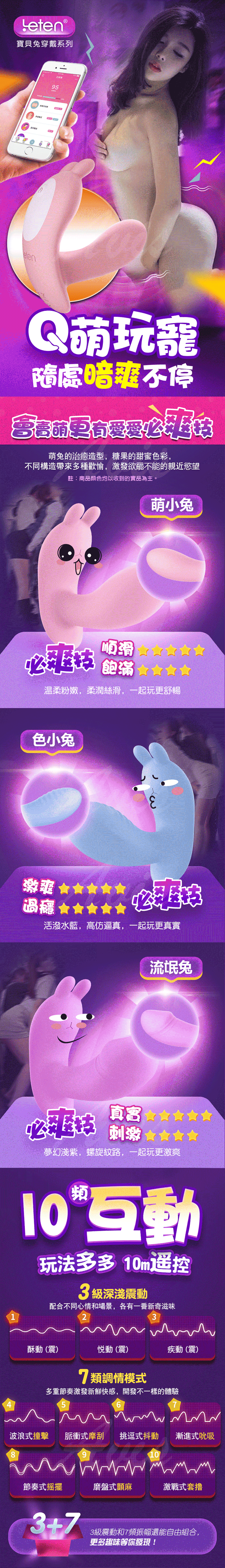 .商品名稱:LETEN Q萌玩寵 寶貝兔系列 雙震+溫控 隱形穿戴 跳蛋 APP智能版