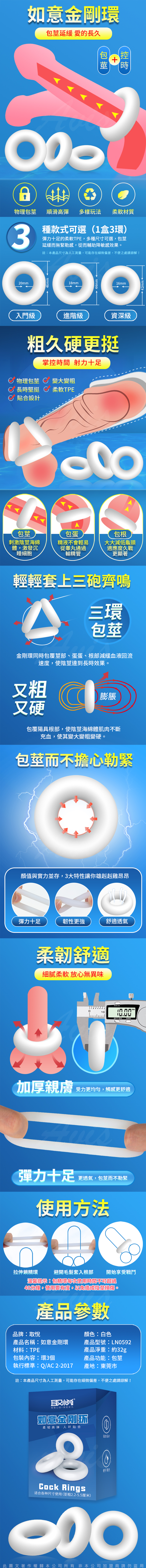 .主商品:取悅-如意金剛環 三環貼合矽膠鎖精環