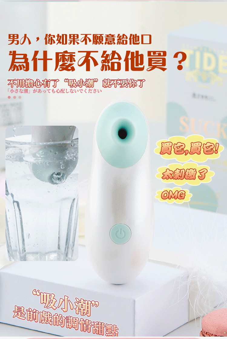 吸小潮吮吸器,撩撥您身上所有敏感部位不管是耳垂、咪咪或是蜜豆都能輕鬆刺激到!!!擁有3速+7種波段吸吮每一種模式都能帶給您不同的感受喔~此款造型可愛小巧便攜,吸小潮將是您外出時的不二選擇高潮