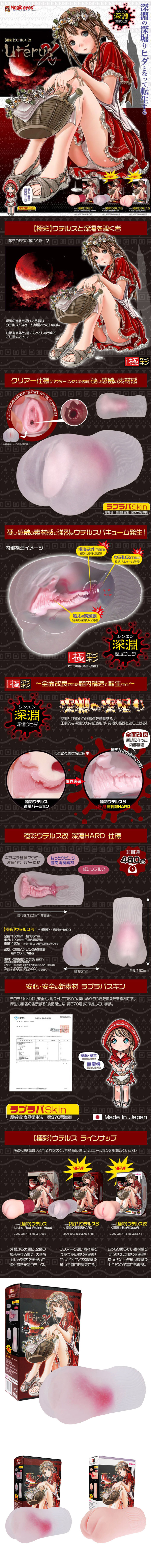 對於喜歡緊繃美少女感覺的朋友,Magic Eyes Uterus X 極彩深淵飛機杯為您提供夢寐以求的紅色子宮。這款是 Magic Eyes 推出的深淵飛機杯的 Hard 硬版,一個半透明、更堅韌的外表以及在內部更大、更清晰的突起。外觀半帶透明,可以在插入時看到內部的動作。青春無敵美少女的鮑鮑,肌膚柔軟蓬鬆,白嫩香滑,你忍的住嗎?