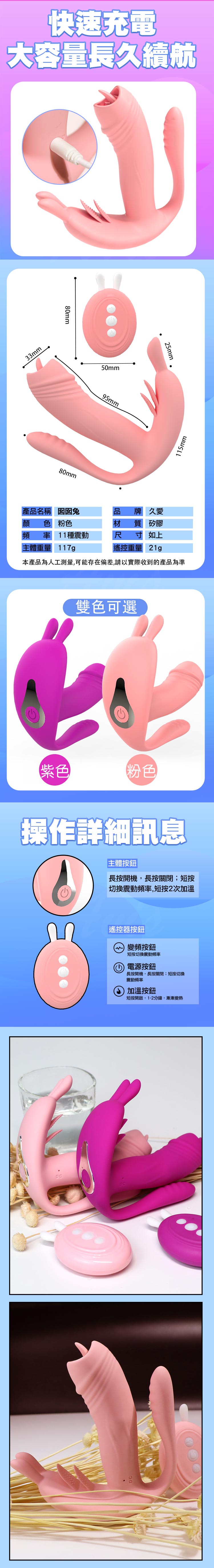 產品名稱:久愛-囡囡兔三舌震舔11段變頻加溫遙控震動器