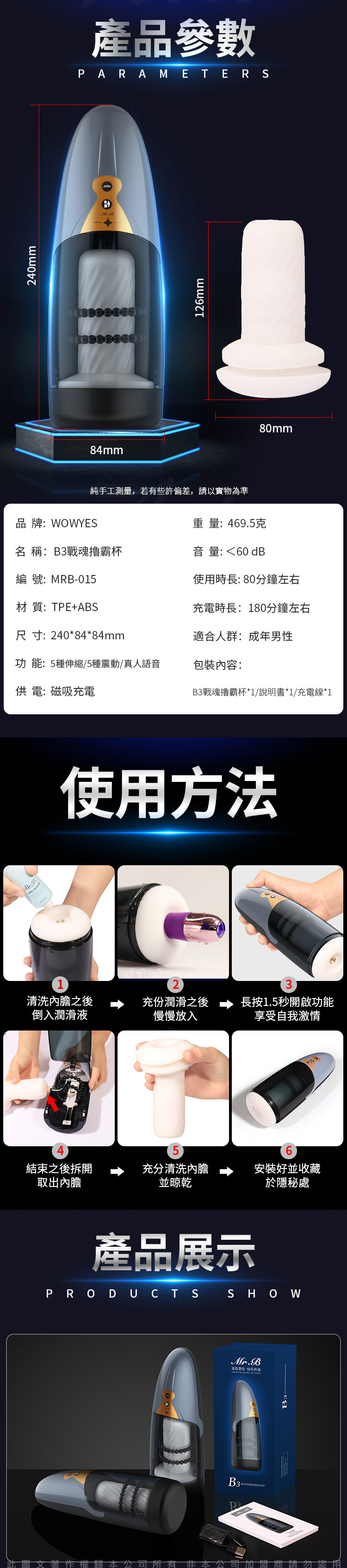 WOWYES B3戰魂 伸縮吸吮 擼霸 飛機杯