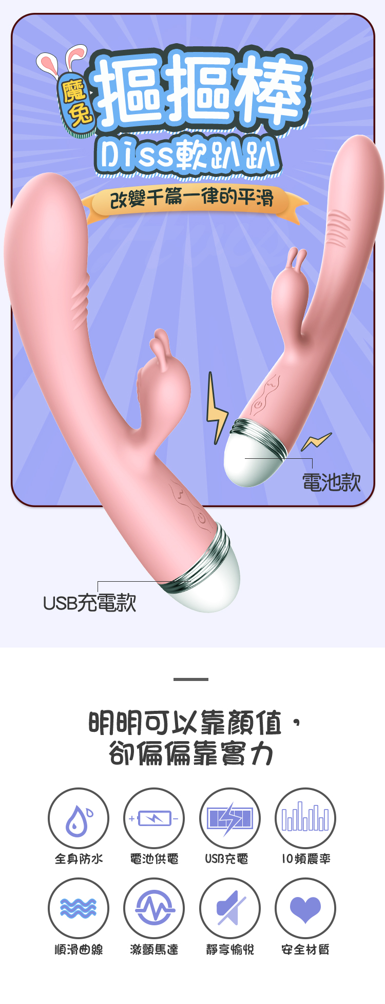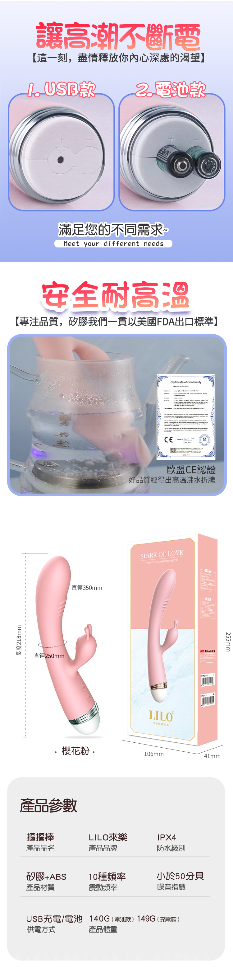 名稱:LILO-魔兔摳摳 10頻震動 按摩棒 USB充電款