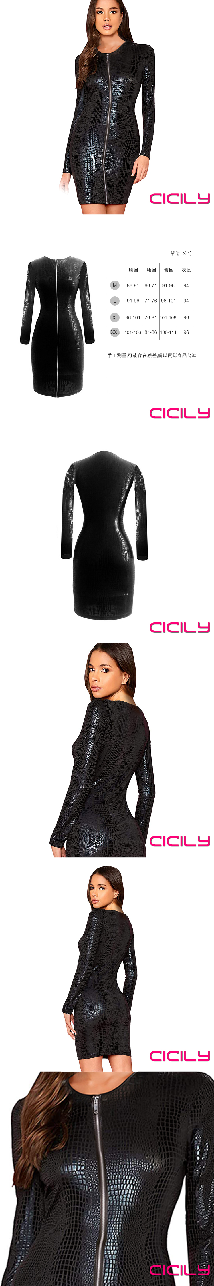 .主商品:CICILY 蛇姬 仿蛇皮緊身拉鍊裙 漆皮膠衣 M