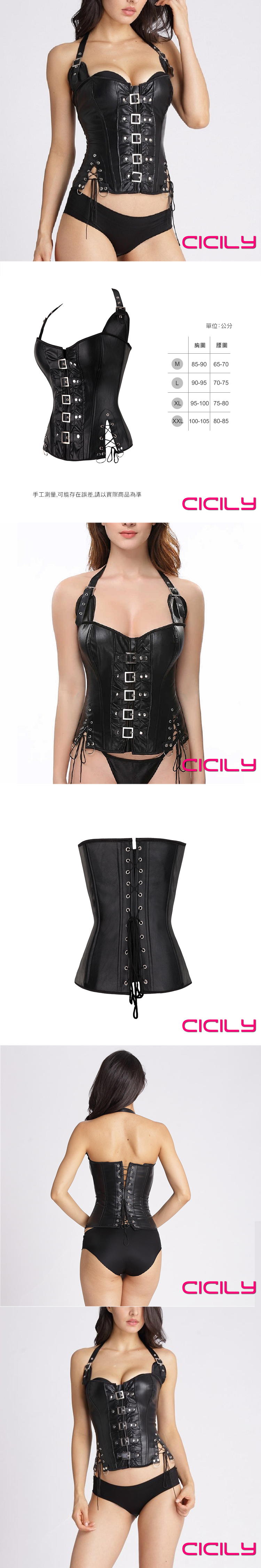 CICILY 女王的SM調教 掛脖束腰緊身衣漆皮膠衣 黑 L