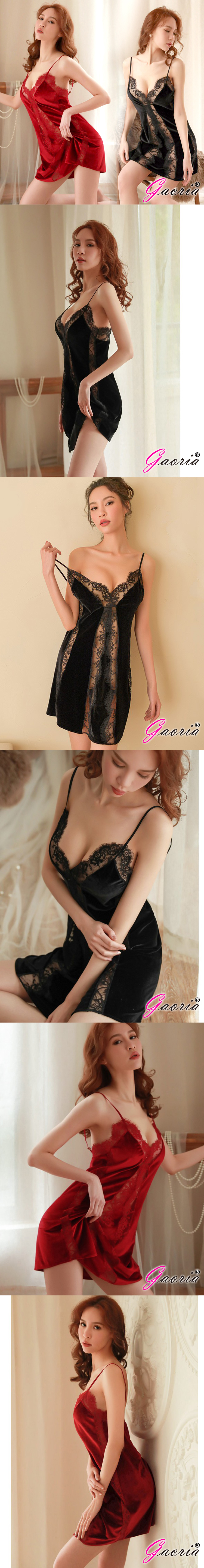 【Gaoria】擄獲美姬 絲絨性感蕾絲睡裙-紅