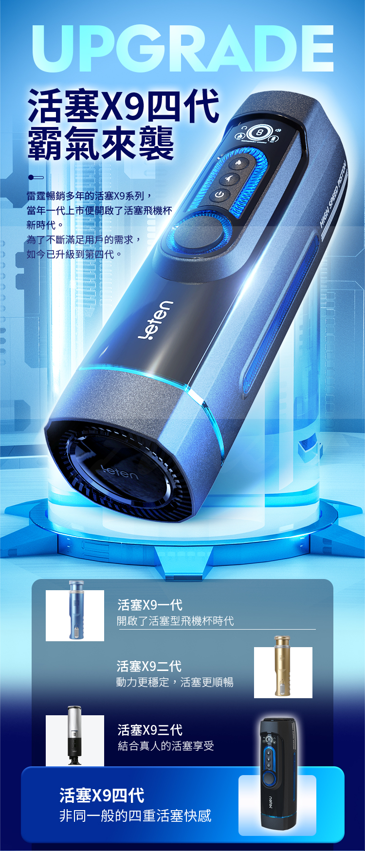 LETEN 雷霆暴風X-9 第四代活塞語音智能加溫電動飛機杯 波多野結衣配音