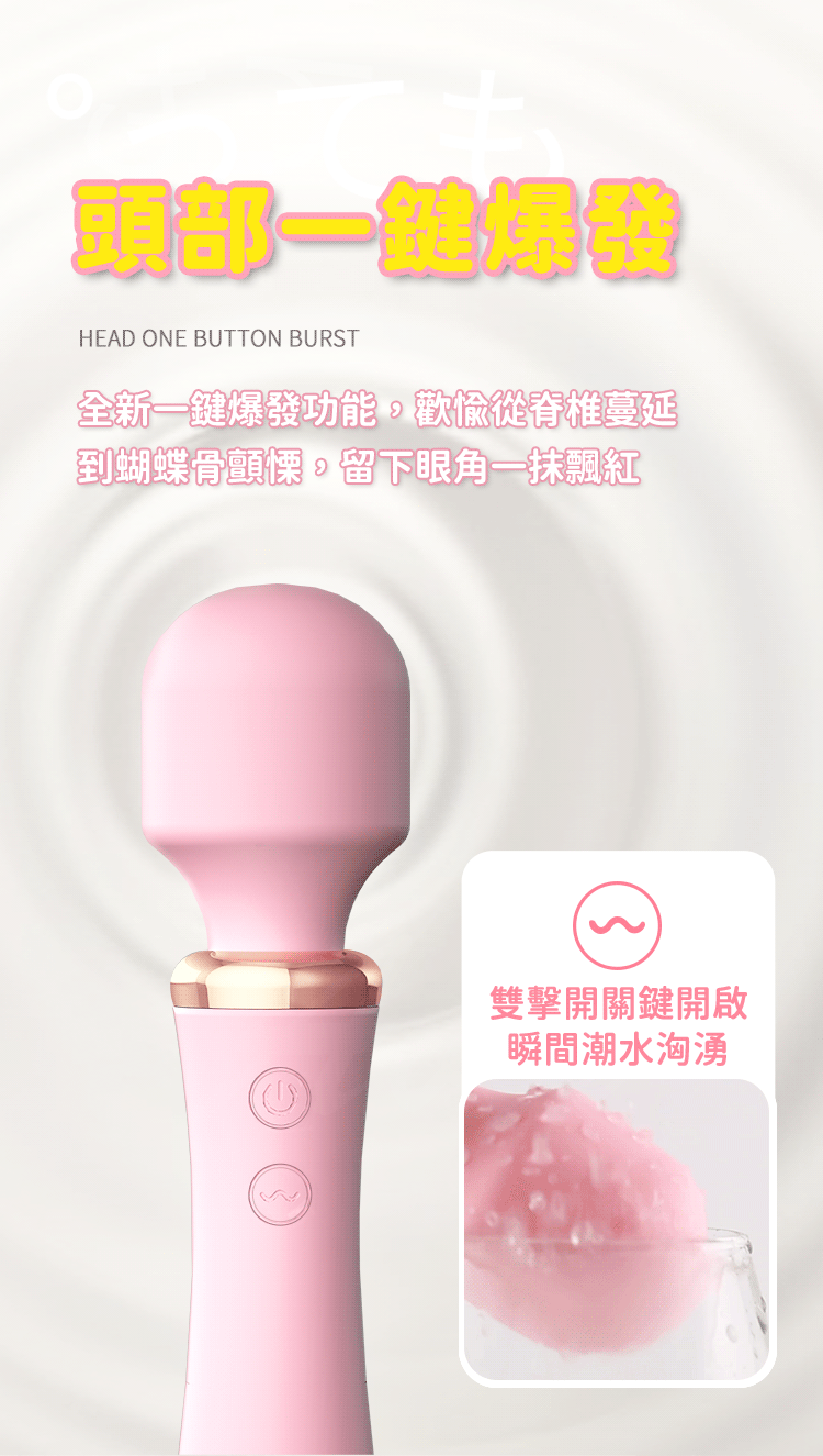 功能:雙頭震動(10段變頻)、頭部一鍵爆、尾部可加溫
