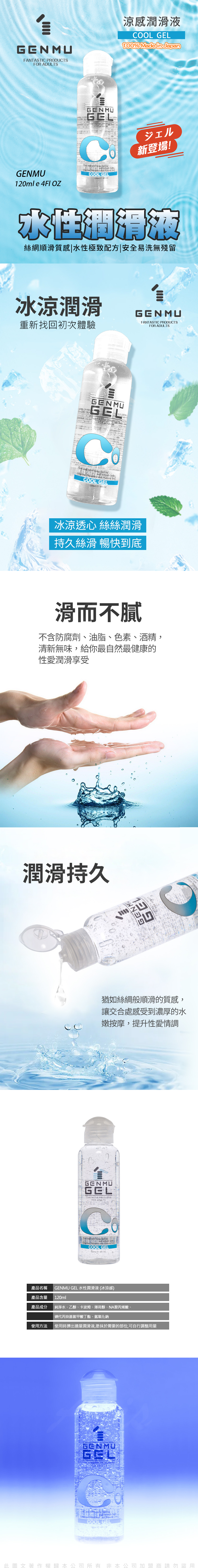 產品名稱: 日本GENMU GOOL GEL 水性潤滑液 120ml(冰涼感)