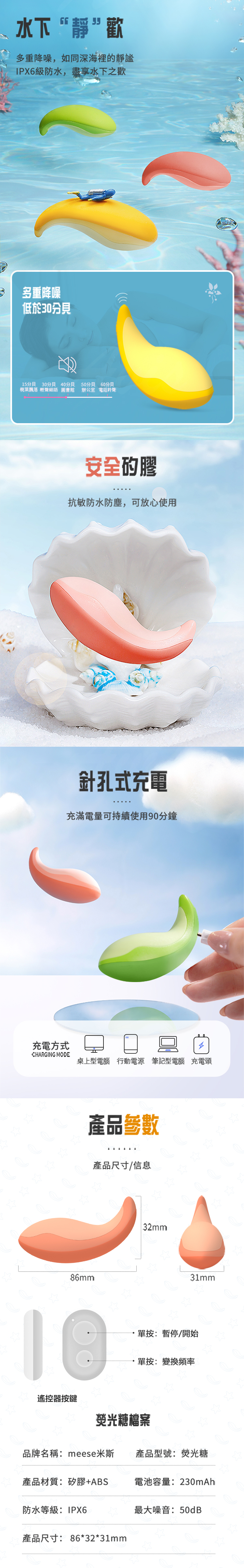 名稱:米斯meese-熒光糖 10段變頻 遙控跳蛋
