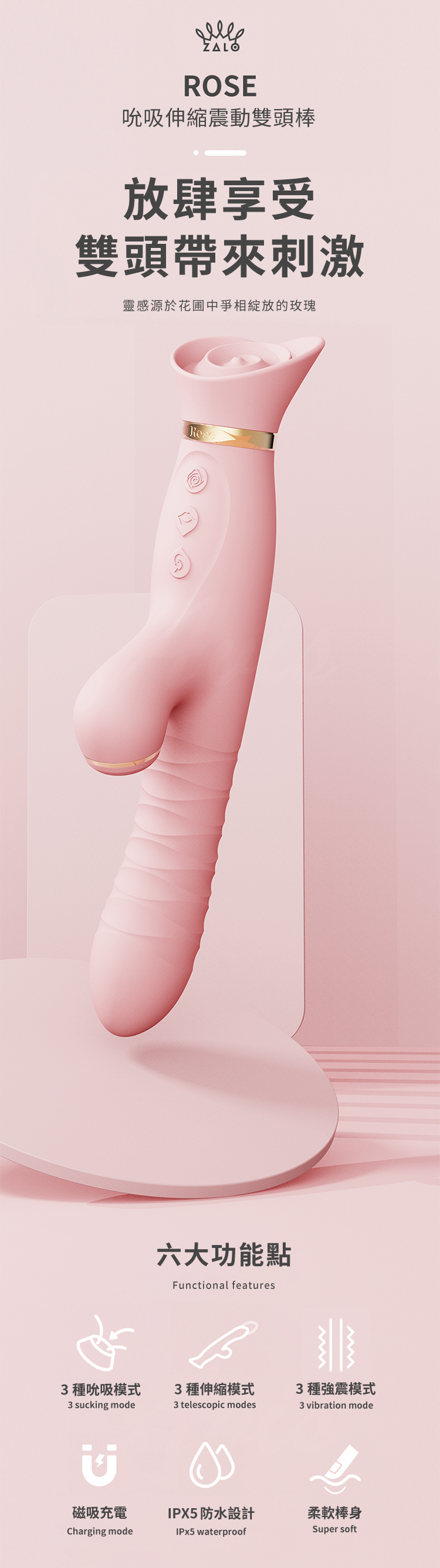 產品名稱:Rose-多功能吸伸縮頭震動棒