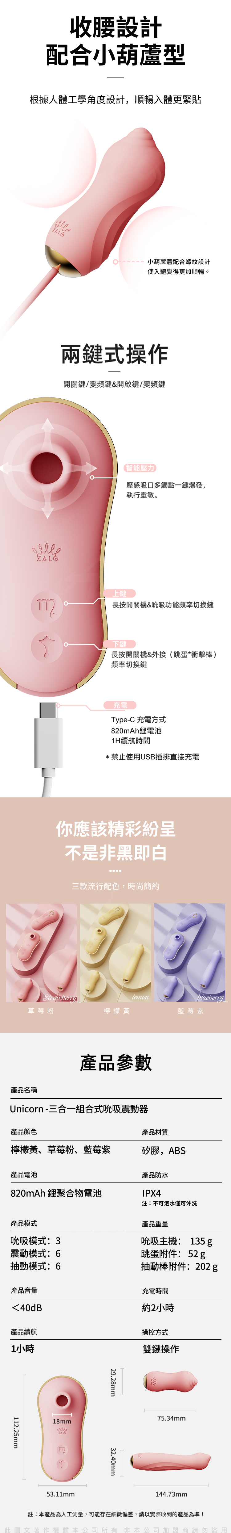 產品名稱:Unicorn Set 組合式吸吮抽插按摩器