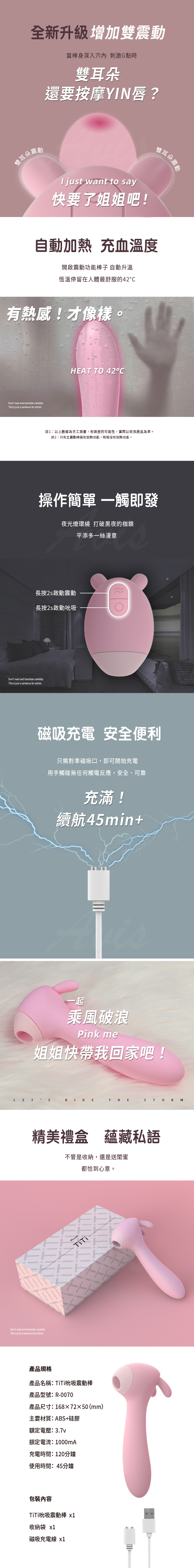 產品名稱:RENDS-TITI兔 自動加溫 吸吮震動按摩棒