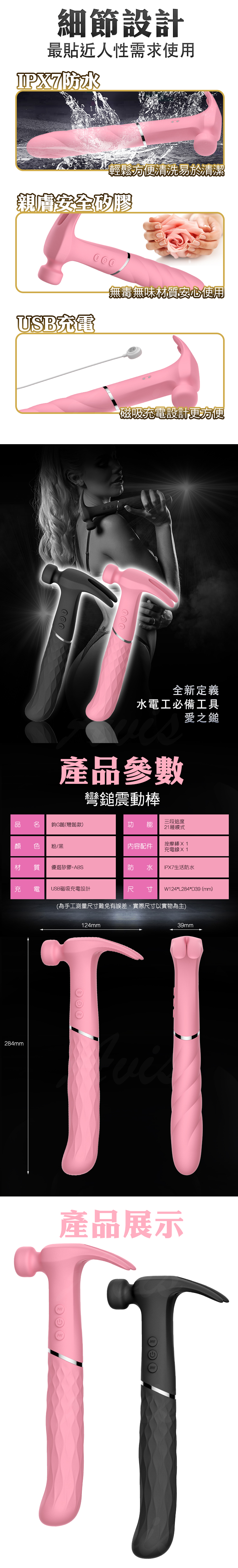 做工的人 鎚子造型 敲彈 夾逗 插震 按摩棒 粉紅榔頭 彎鎚