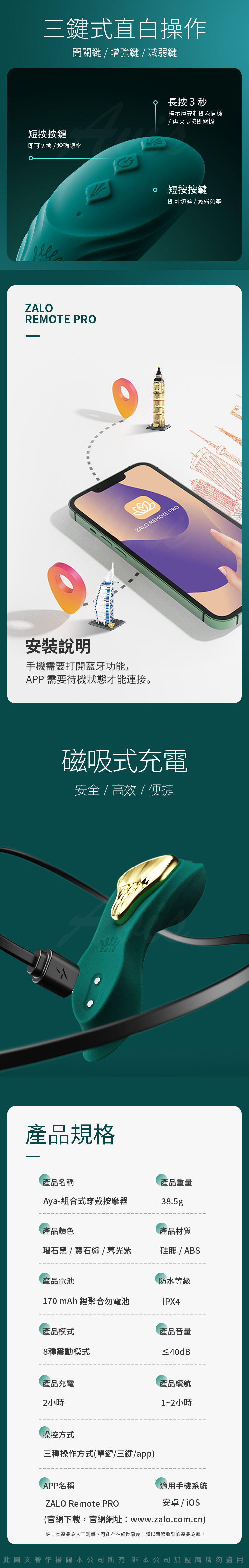 Zalo|Aya|組合式穿戴按摩器-綠色