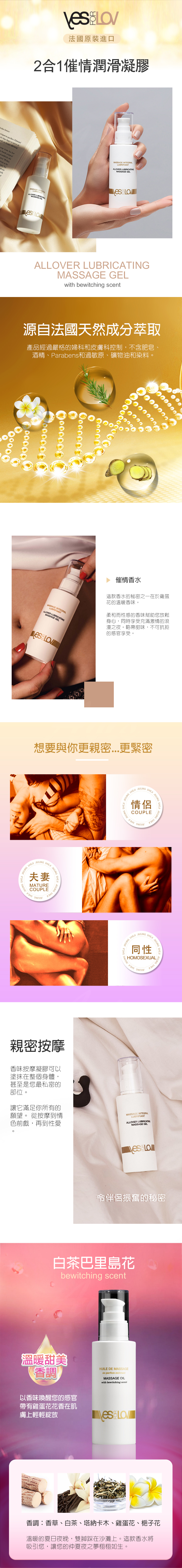 YESforLOV|催情香氛潤滑按摩凝膠 100ml 白茶巴里島花味