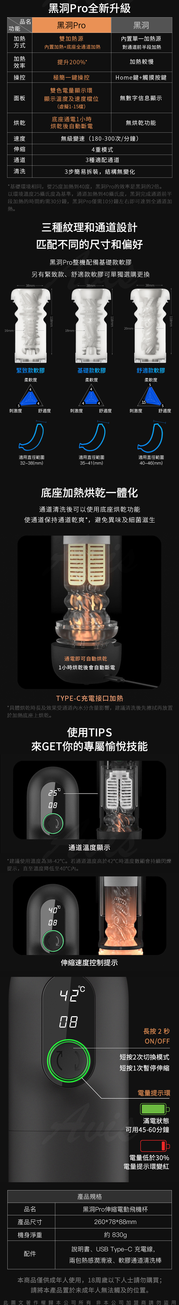 產品名稱:黑洞Pro伸縮電動飛機杯