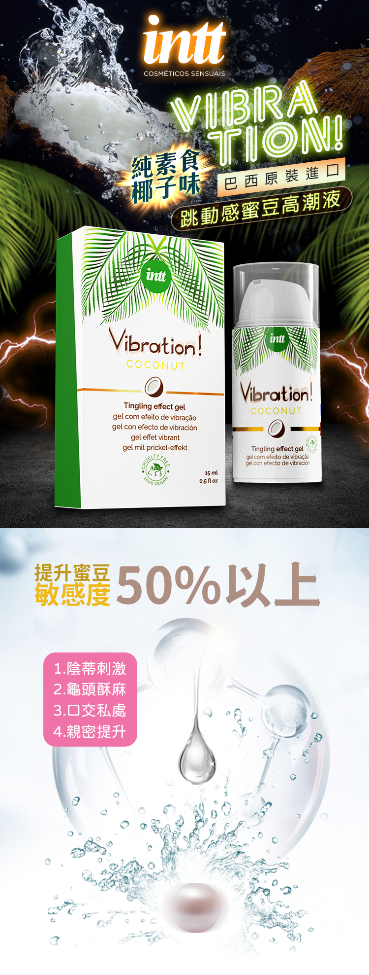 品名:巴西Intt|Vibration 跳跳糖感|純素 爆跳式高潮液 15ml (椰子味 可口交)