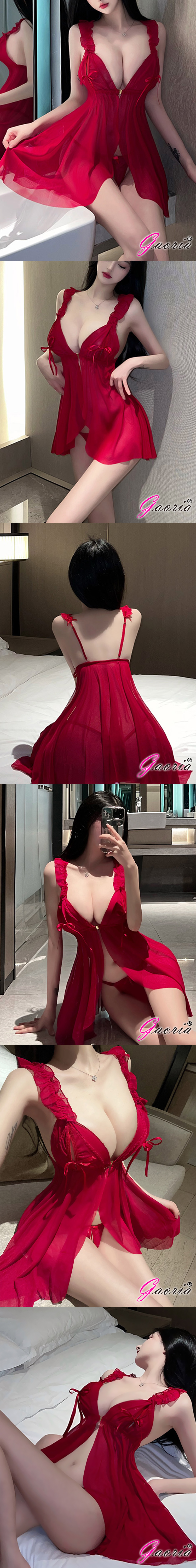 · 商品名稱:Gaoria|輕紗之夜|性感吊帶睡裙 情趣睡衣· 商品內容:情趣睡衣· 商品材質:聚酯纖維· 尺寸:FREE SIZE,適穿胸圍32~36吋,腰圍22-32吋內· 以上為手工量測,誤差約2CM內· 商品編號:N8-0003