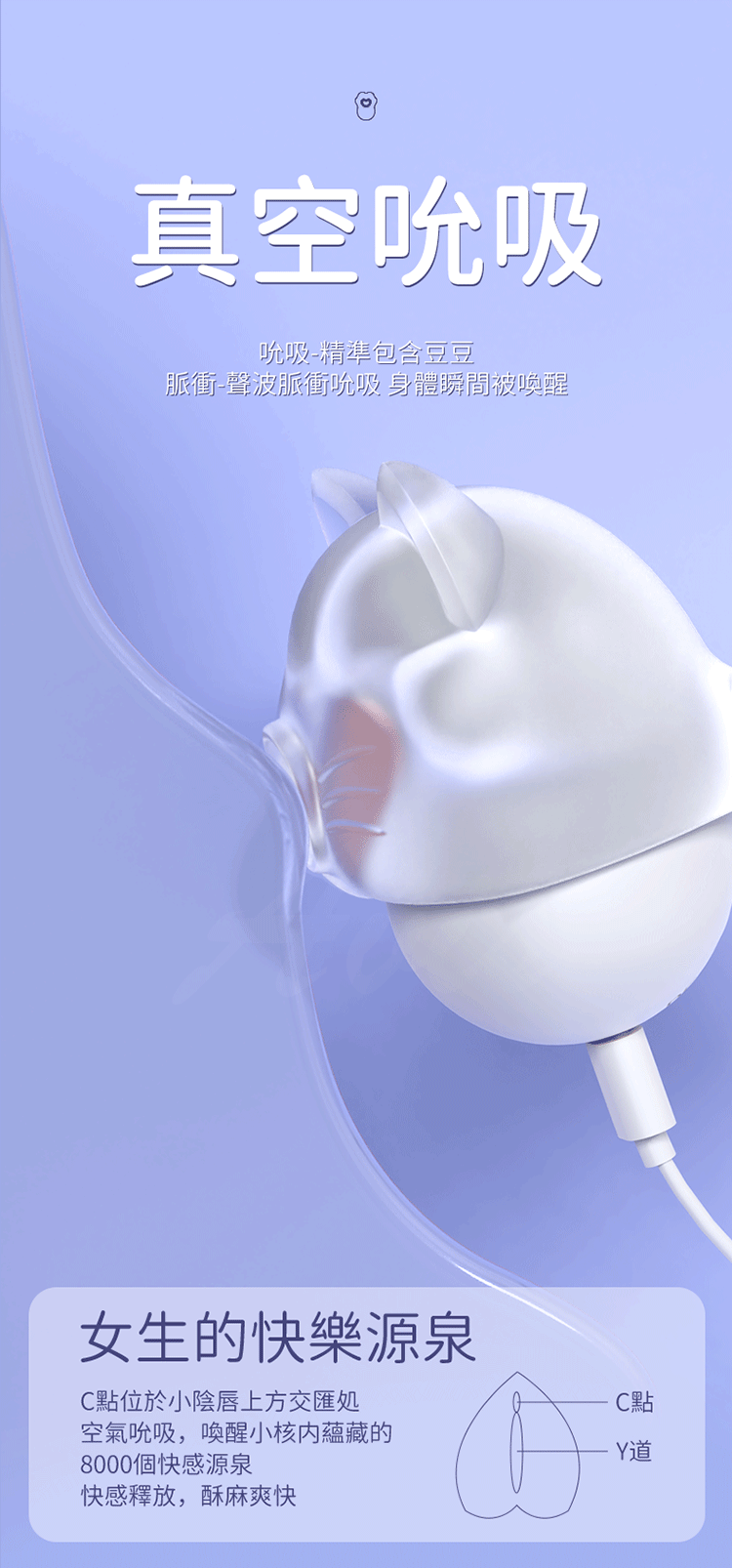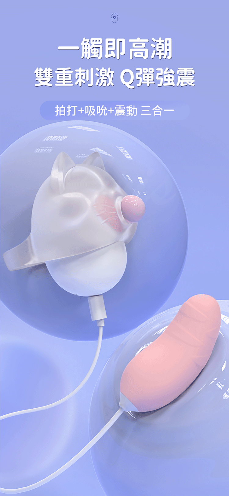 雙重刺激,Q彈強震,讓你沉浸於極致快感。**拍打、吸吮、震動**三合一,全面激發你的感官,享受高潮來臨的瞬間。