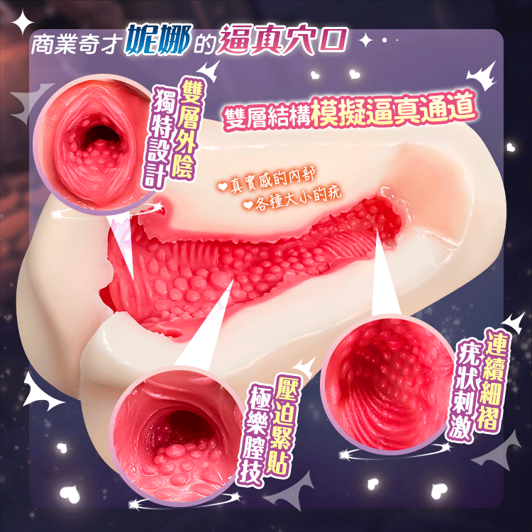 雙層外陰設計:完美呈現妮娜的逼真穴口,入口緊緻,外型極致還原。
