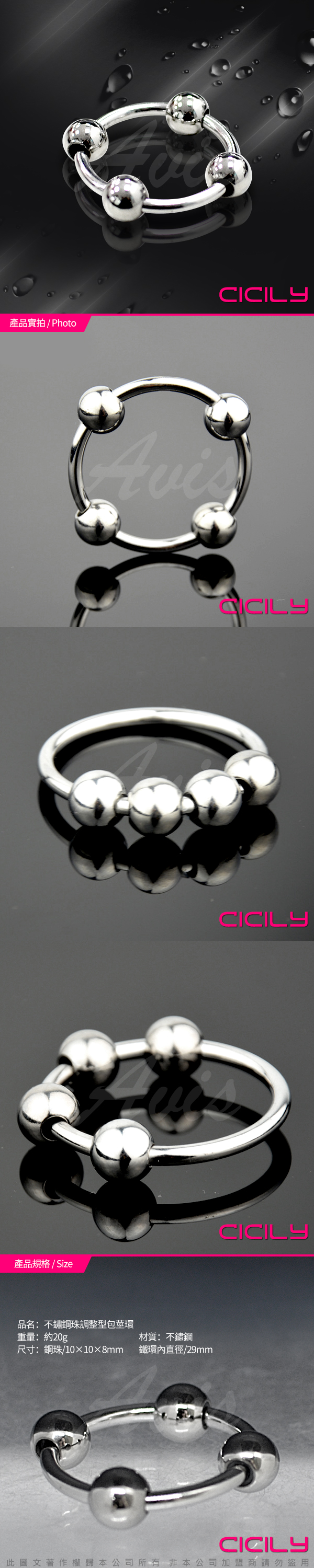 .商品名稱:虐戀精品CICILY 金屬不銹鋼 四珠鎖精環 陽具陰莖環