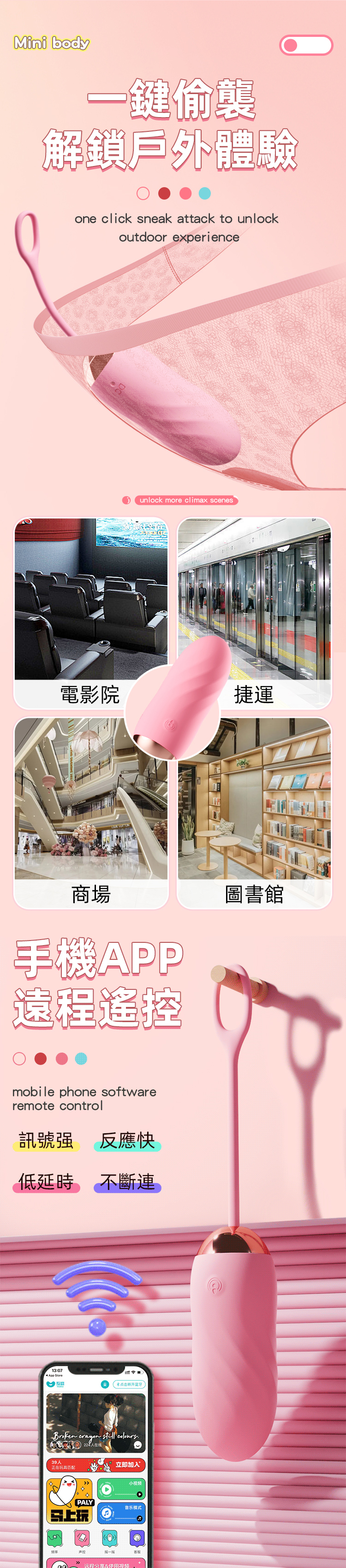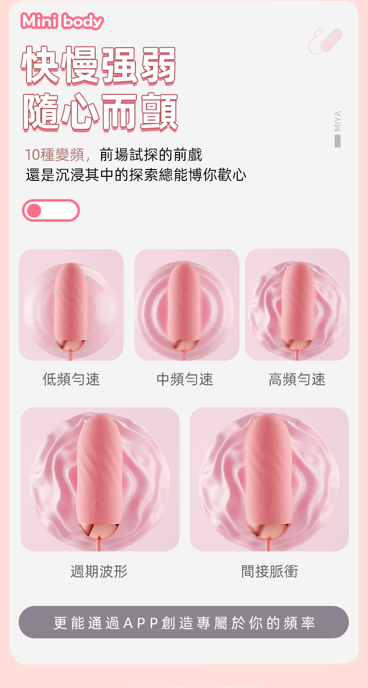 - 全新智慧馬達,高頻強震,震感層次更豐富,全面激發敏感神經,體驗無與倫比的快感。