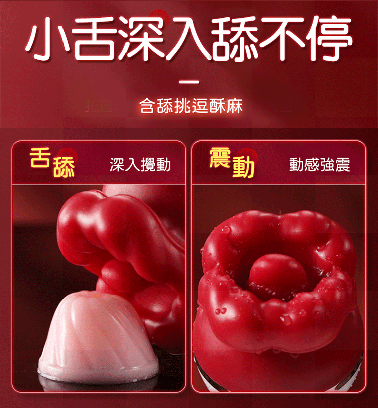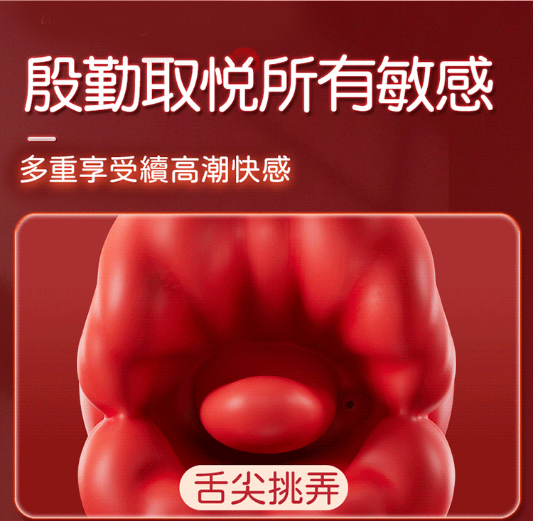 仿真舌頭,靈巧律動:柔軟Q彈的舌頭,360°全包裹、環繞緊含,讓每一處感官都沉浸於真實的愉悅感。