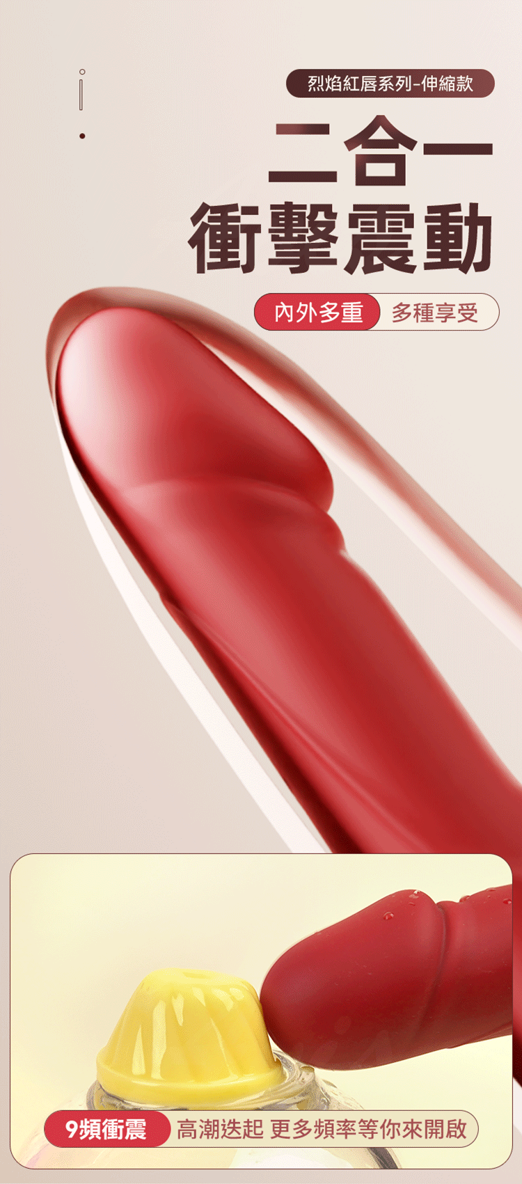 9頻衝撞模式:多達9種震動模式,帶來強烈而豐富的震撼體驗。