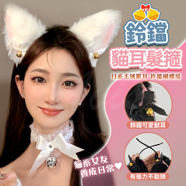 商品名稱 :萌響貓耳鈴|髮箍造型飾品材質:仿兔毛毛料、緞帶蝴蝶結、小鈴鐺顏色:白色、黑色尺寸:髮箍約長15cm單耳約長8cm