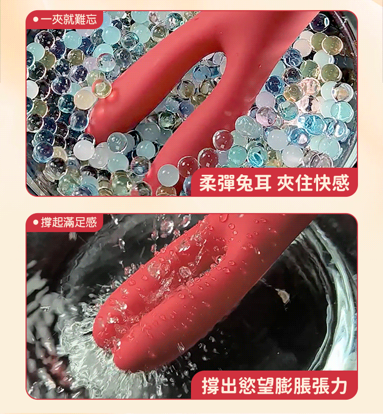 兔耳造型柔韌貼合乳頭與豆豆,主體深入蜜點震顫不止,結合負壓吮吸快感,讓妳身體深處每一寸都被愛撫挑逗!