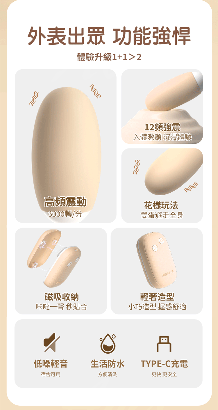 商品名稱:LILO|魔術盒|雙頭震動跳蛋 奶茶色