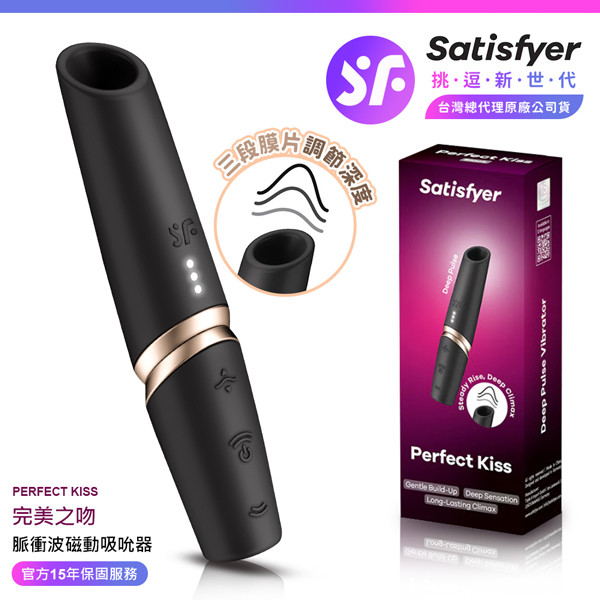品名:Satisfyer|Perfect Kiss|完美之吻脈衝波磁動吸吮器 黑金