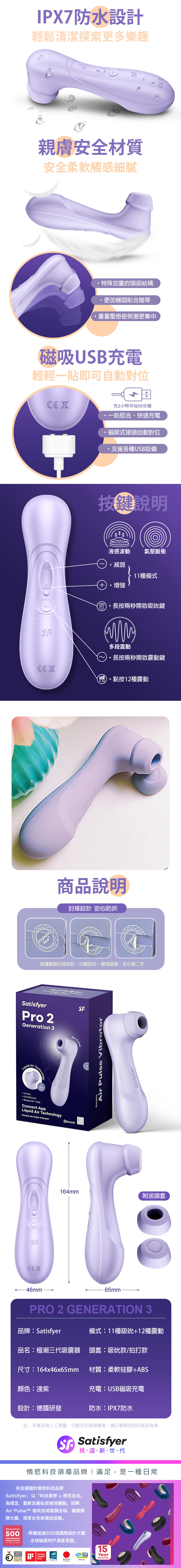 品名:Satisfyer|Pro 2 Generation3|極潮三代 吸吮陰蒂震動器 丁香紫